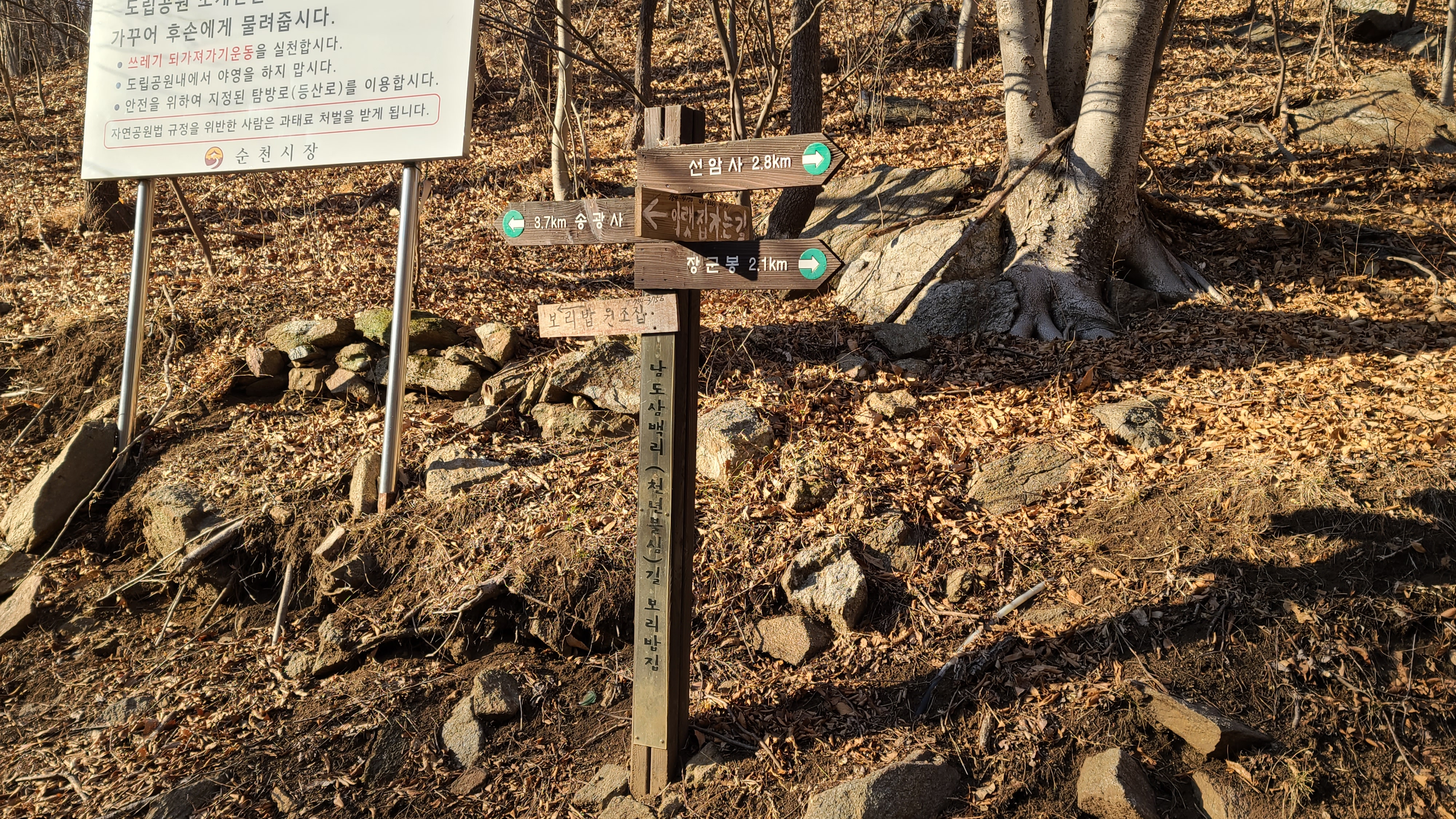-2019년 3월 천년불심길(송광사-천자암-선암사)를 걸을 때는 지루하다는 느낌이었으나 정상에서 끝없이 이어진 봉우리를 보면서 소설 태백산맥의 무대답다는 생각이 들었다.